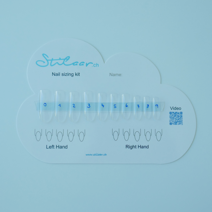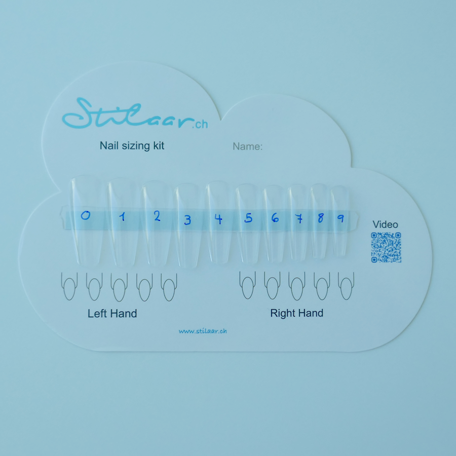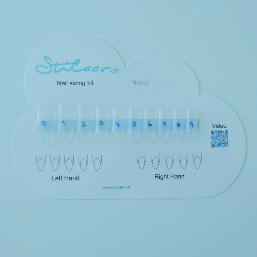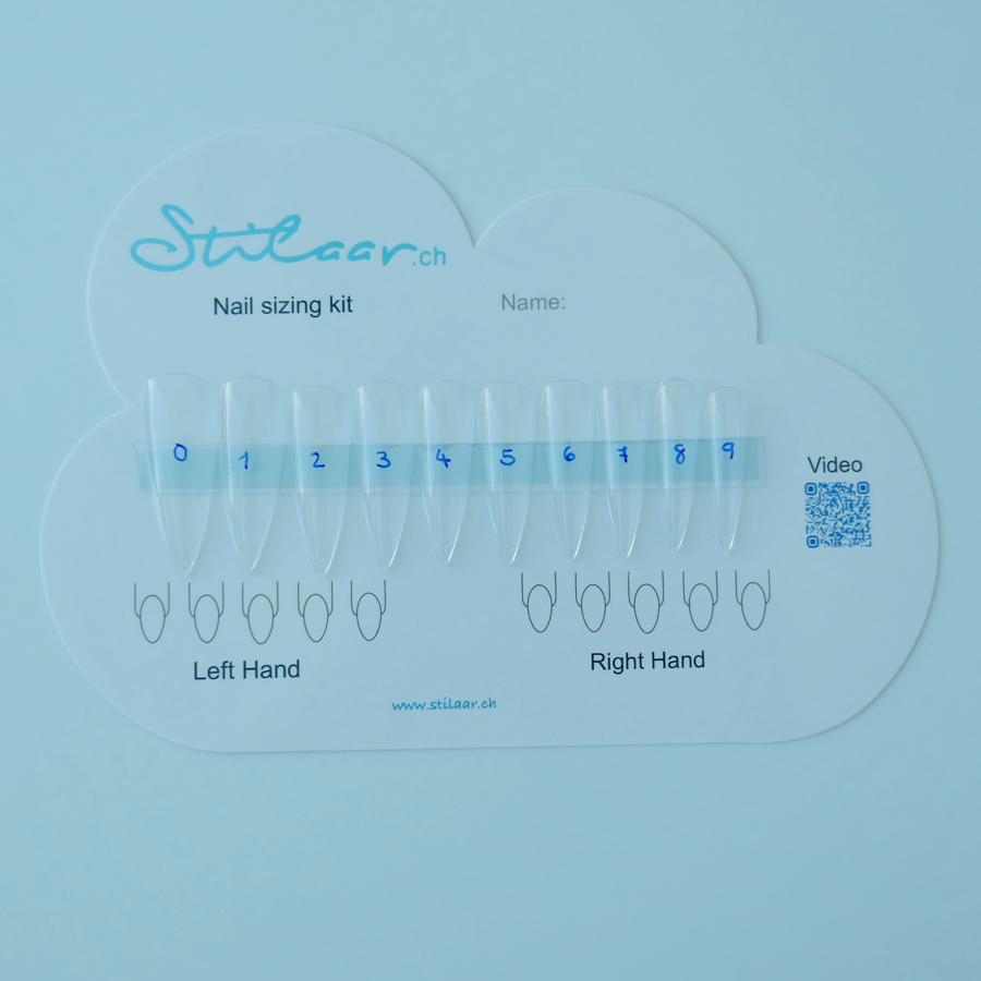Mit dem Set kannst Du ganz einfach Deine Nägel abmessen und uns einfach ein Foto senden.